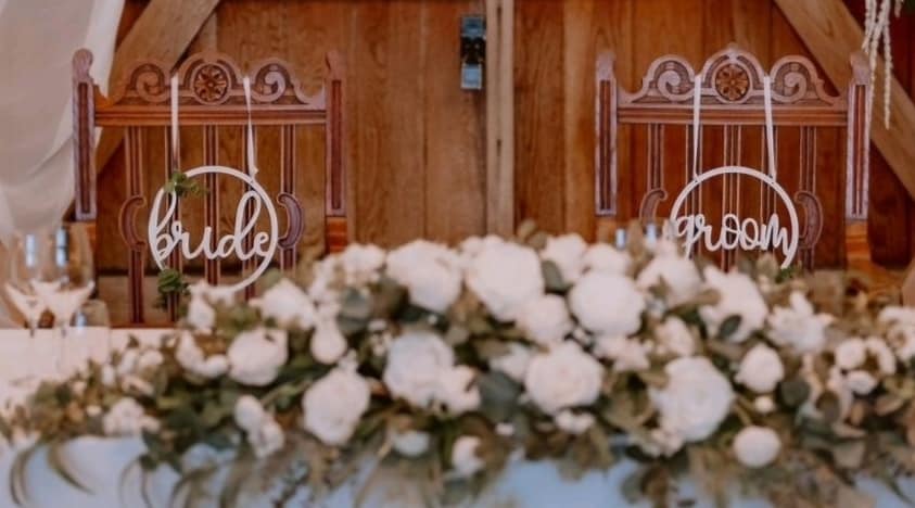 White wooden Groom & Bride chair hoops- 23cm Diameter – £5 for both