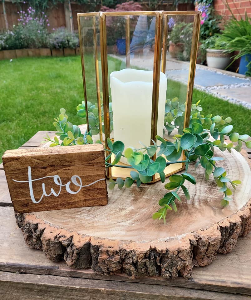 Wooden table number £2 each (top table, 1 – 10)