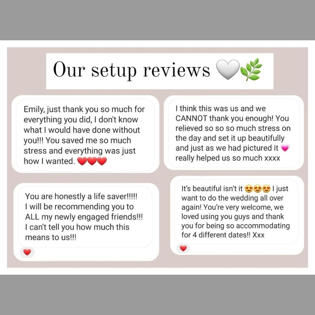 Then I can help you setup all your wedding decor the morning of or day before. This can include non LWT items too! I also offer a free meeting to discuss all the details needed for your setup, this can be in person or online.